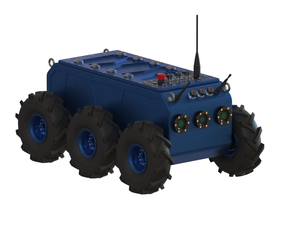 Son châssis robuste et économique, équipé de 6 moteurs brushless de 100 W et de réducteurs hautes qualités à couples élevés, garantit puissance, fiabilité et durabilité dans les environnements les plus exigeants.