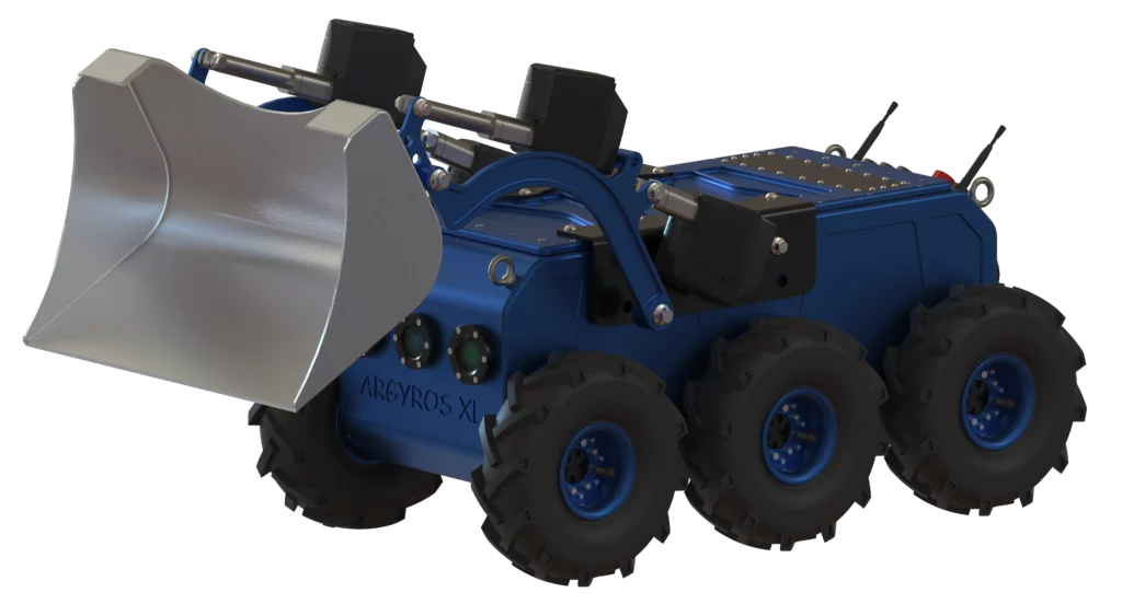 L’ARGYROS XL est un robot de dernière génération, conçu comme une plateforme catalogue à laquelle il est possible d’adapter différents outils tels qu’une lame ou un godet motorisé sur vérins.