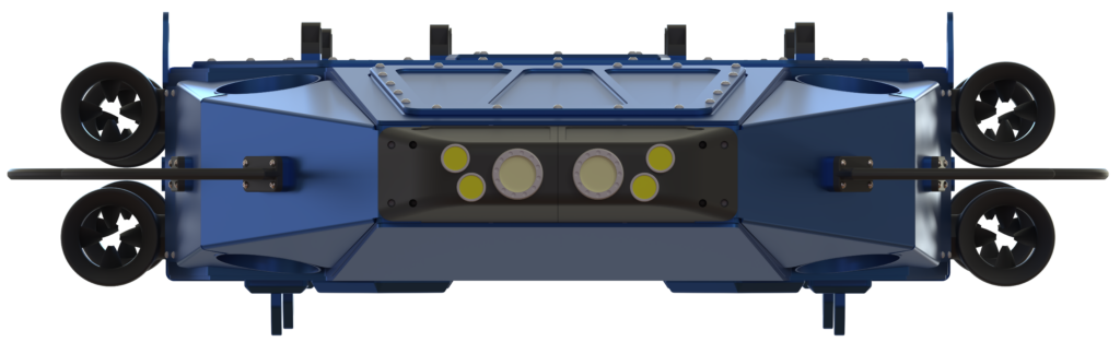 - une caméra inférieure, orientée vers le bas, pour le contrôle de la trajectoire, de la hauteur par rapport au fond et l’observation directe des opérations.